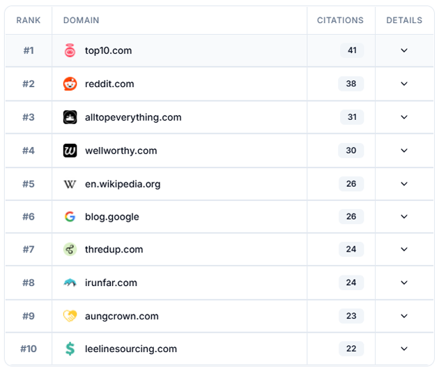Understand which sources influence AI results most, so you know where to focus your PR, SEO, or content efforts.