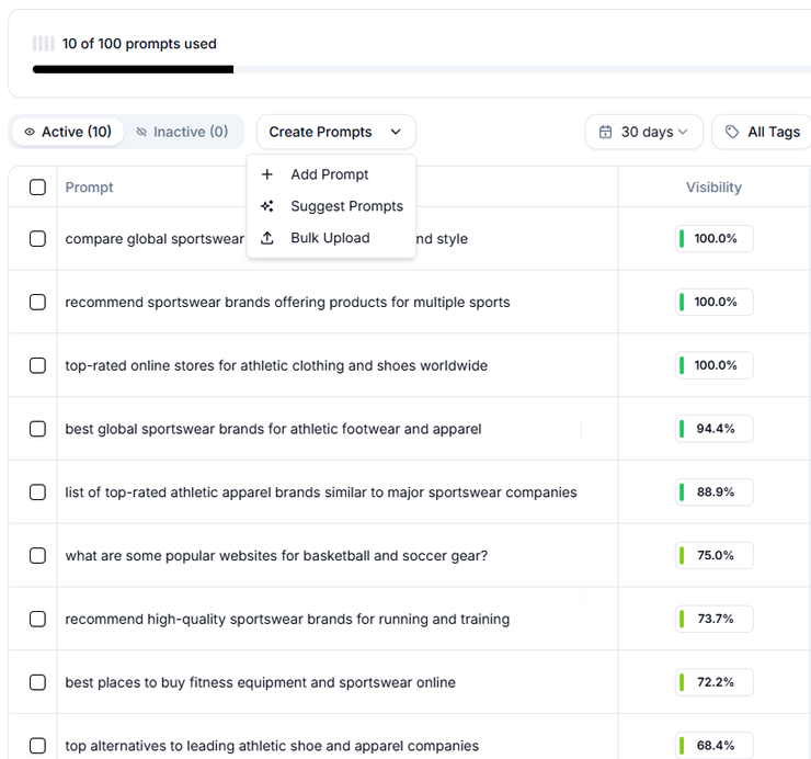 Track how AI answers change based on different prompts and use cases. Perfect for testing positioning and messaging.